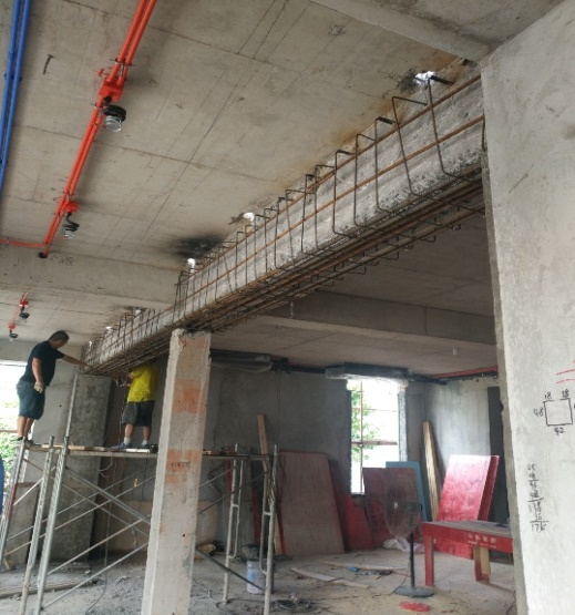 地上五层混凝土框架结构,原设计为橡胶制品仓库使用,现改造为数据中心,楼面承重由原来800kg/平方调整到1-2吨/平方,设计到梁柱、基础加固